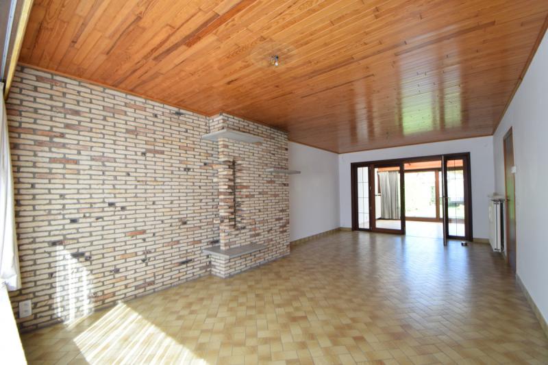 De woning bestaat uit een inkomhal met apart toilet en trap naar de bovenverdieping. Verder is er vooraan een grote leefruimte met plaats voor een zit- en eethoek. Aanpalend aan de leefruimte is er een ingerichte keuken (pompsteen, gasfornuis, vaatwasser, oven en inbouw ijskast). De leefruimte geeft achteraan uit op de zomerkamer met zicht op de tuin.
