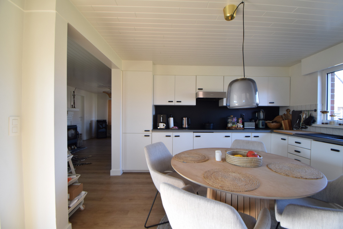 Verzorgde laagbouwwoning met 3 slaapkamer, tuin en grote garage.De woning bestaat uit een zomerkamer met zicht op de tuin die uitgeeft op de keuken met ontbijthoek, aanpalend is er een ruime leefruimte met knusse zithoek en mogelijkheid om een kachel te plaatsen. Verder is er een nachthal met apart toilet die uitgeeft op een badkamer met lavabomeubel en ligbad met douchescherm.
