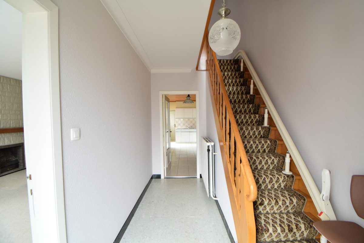 De woning bestaat uit een inkomhal met rechte trap naar boven. De inkomhal geeft uit op de leefruimte met zit- en eethoek. Aanpalend is er een eenvoudige keuken met eethoek.