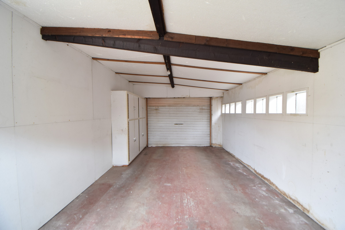 De kleine tuin is afgesloten langs achteren en in de tuin staat een garage, vooraan de woning zijn 2 parkeerplaatsen voorzien.