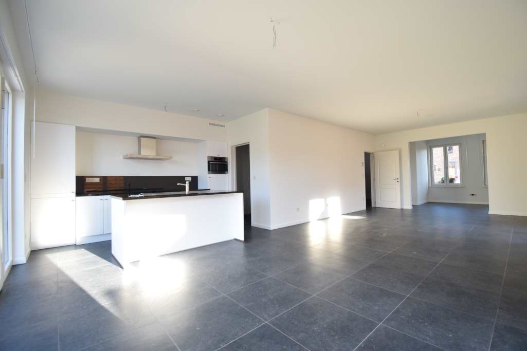 | Living | 48.01 mē | Ruime leefruimte met zithoek, eethoek en open keuken op keramische tegel, door de ramen vooraan en het groot raam in de zij- en achtergevel is deze ruimte zeer helder door de veel lichtinval. |