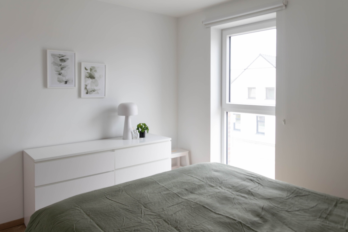 Achteraan bevinden zich twee ruime slaapkamers, waarvan één voorzien van een ingemaakte kastenwand. De moderne badkamer is uitgerust met een regendouche en stijlvol lavabomeubel. Verder is er een apart gastentoilet en een praktische berging met ingemaakte kasten voor wasmachine en droogkast. Hier zijn ook de condenserende HR-gasketel en het ventilatiesysteem D ondergebracht.