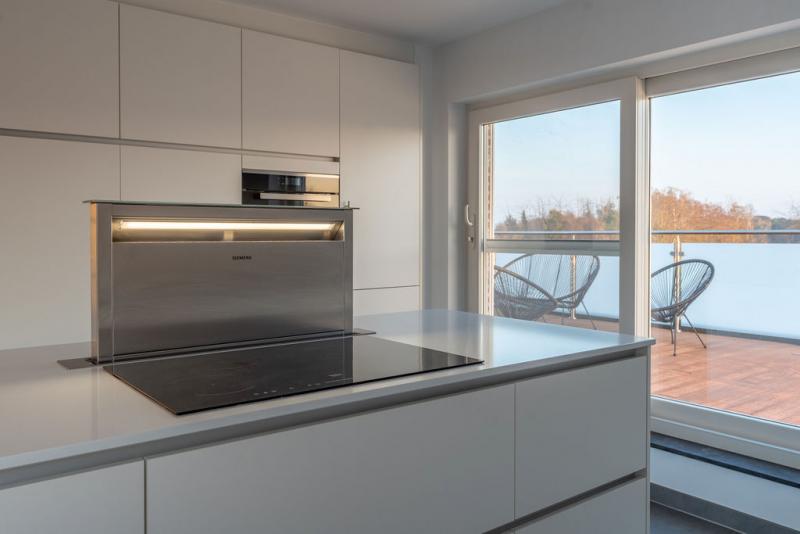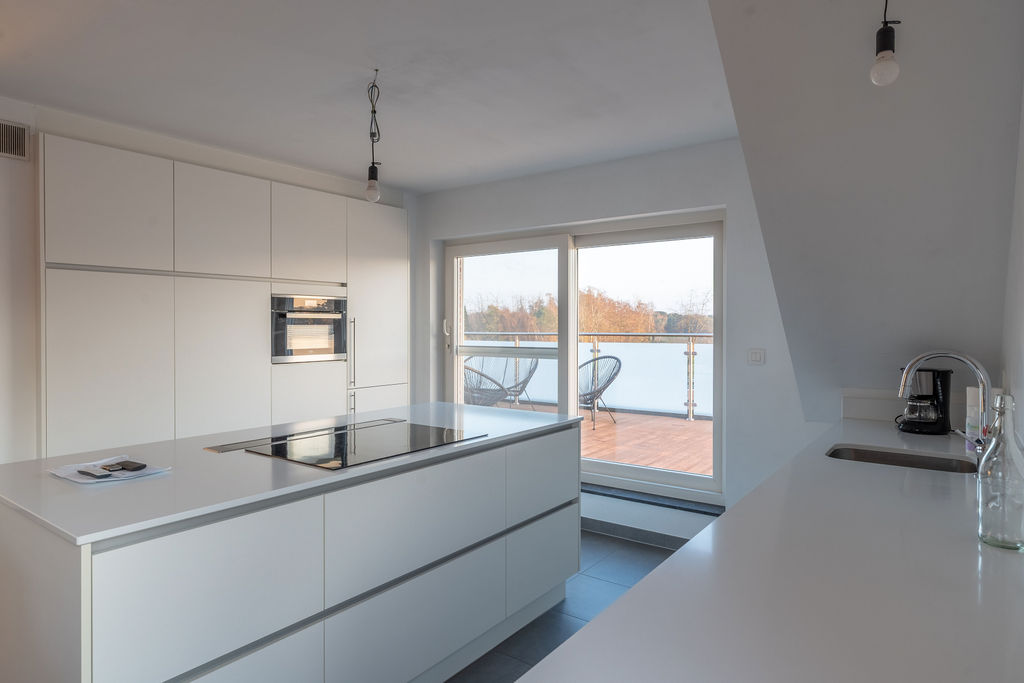 Keuken 1  10,69 mēVolledig ingerichte keuken met eiland, de keuken is voorzien van een pompsteen, inductiefornuis, uitschuifbare afzuigkap, combi-oven, vaatwasser, inbouwijskast en vrieskast en voldoende kastruimte. De keuken geeft achteraan uit op een groot dakterras.