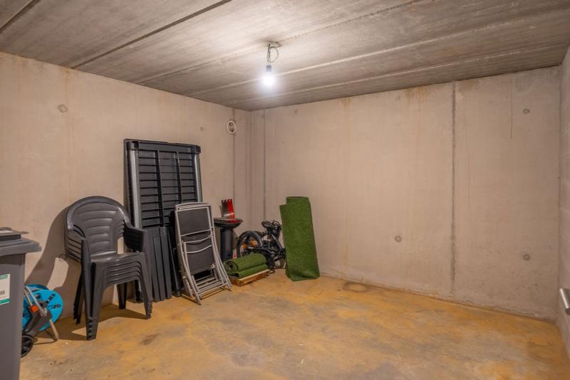 Bij het appartement hoort een mooie kelderberging, een autostaanplaats en ruime bovengrondse garagebox met elektrische poort die de koper verplicht is bij aan te kopen voor € 30.000,-