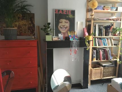 Studio in het centrum van Gent, bestaande uit 3 ruimtes.Een woonkamer met open keuken aan de straatzijde,