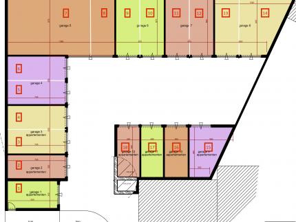 In elke magazijn / garage is één elektrische sectionaal poort geplaatst met een doorrijhoogte van 3,20 meter.