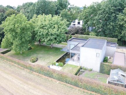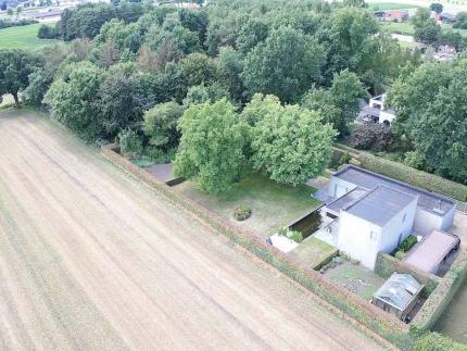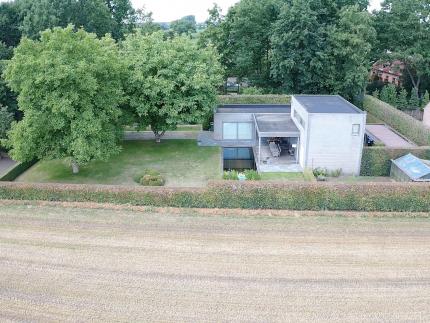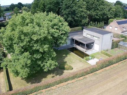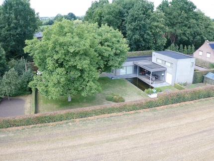 MODERNE vrijstaande villa, met 2 grote slaapkamers, 2 badkamers met een prachtige tuin van van 3.000m˛. Erg rustig gelegen, midden in het groen.Indeling: inkomhal, knappe leefruimte met veel lichtinval bestaande uit een grote zithoek met eetplaats die via grote schuiframen uitgeven op het terras en de tuin. Verder is er een volledig ingerichte open keuken (keramisch fornuis, oven, inbouwijskast, vaatwasser, … ) met aansluitend een bergruimte en cv-ruimte met aansluiting voor wasmachine en droogkast en voldoende kastruimte.