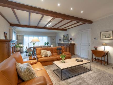 Zeer verzorgde villa met 4 slaapkamers en prachtige tuin op 1.242m˛.De villa bestaat uit een inkomhal met apart gastentoilet, vestiaire en trap naar de bovenverdieping.