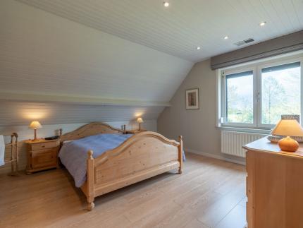 Boven zijn er 3 ruime slaapkamers, twee slaapkamers vooraan en een master bedroom achteraan met aanpalend een zeer ruime badkamer met dubbel lavabomeubel, grote inloopdouche en toilet. Verder is er nog een kinderkamer en een linnenkamer.