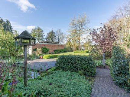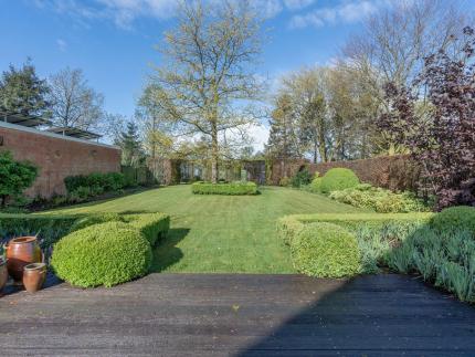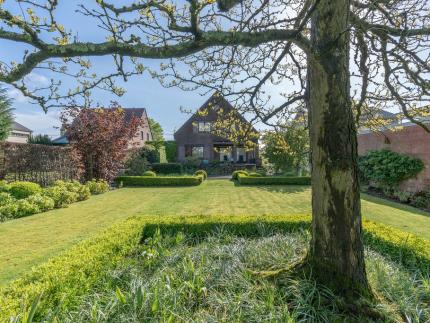 | Tuin | Prachtige tuin met volledig aangelegd met vijverpartij en terras, prachtige bloemperken, hagen en centraal een karaktervolle boom, achteraan is er een tuinhuis geplaatst |