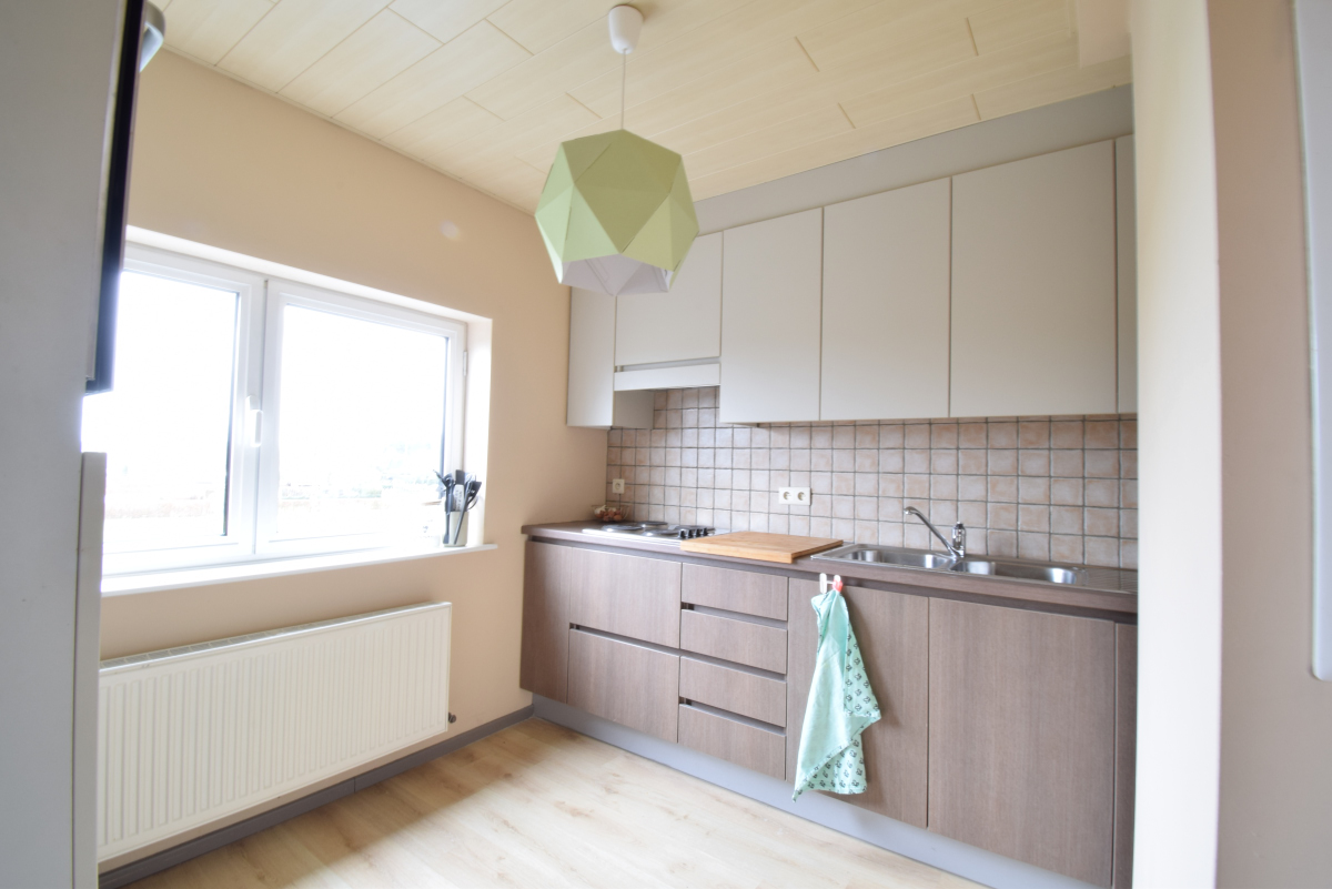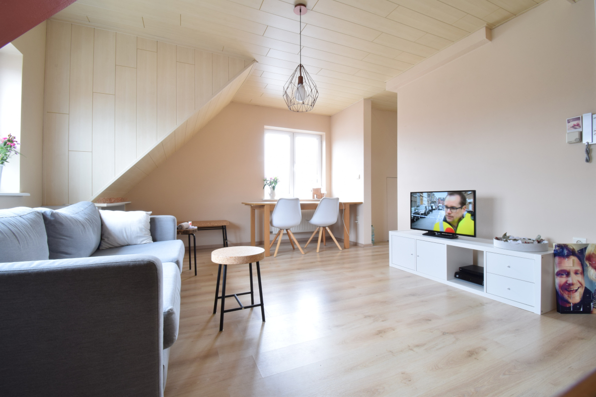 Knusse studio / dakappartement op de tweede verdieping met één slaapkamers en autostaanplaats, gelegen in het centrum van Tielen.GEEN gemeenschappelijke kosten.