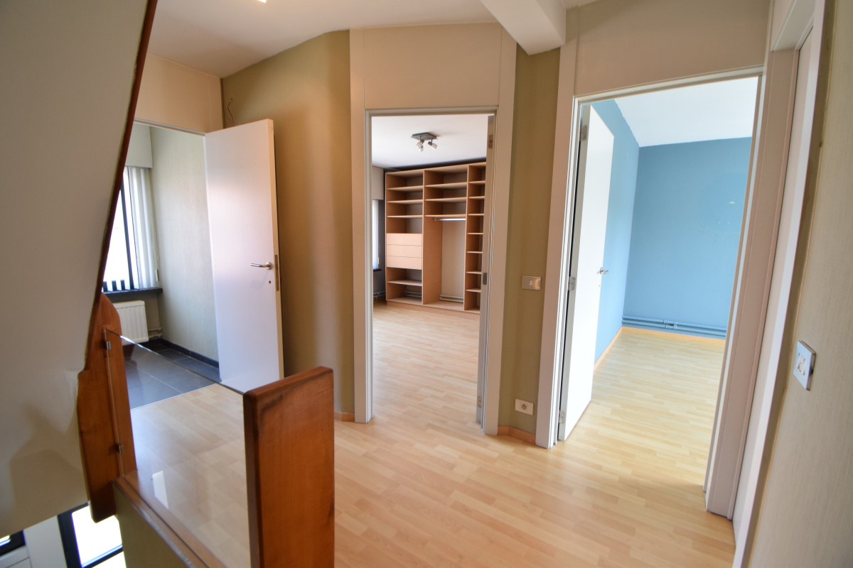 Verzorgde woning met tot 3 slaapkamers op een perceel van 475mē in het centrum van Lille.Het gelijkvloers bestaat uit een inkomhal met gastentoilet en trap naar de bovenverdieping, vooraan is er een ruime leefruimte met zit- en eethoek en een volledig geïnstalleerde open keuken. De woonkamer en keuken geven via een schuifraam uit op de veranda en de tuin achteraan. Achteraan is er nog een bureauruimte of 3de slaapkamer.