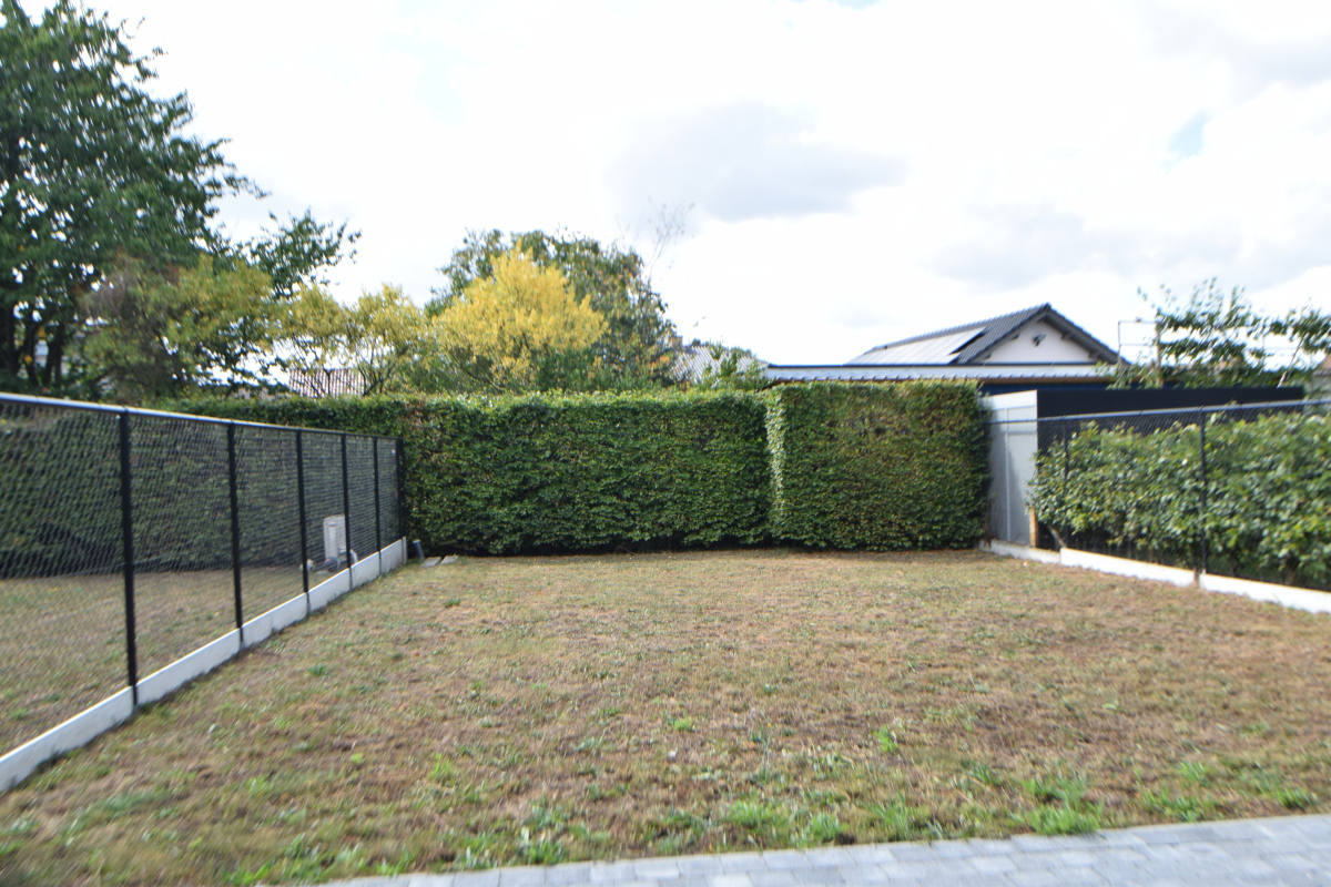 De tuin wordt onderhoudsvriendelijk aangelegd, ter hoogte van de zij inkom is er een carport geplaatst.