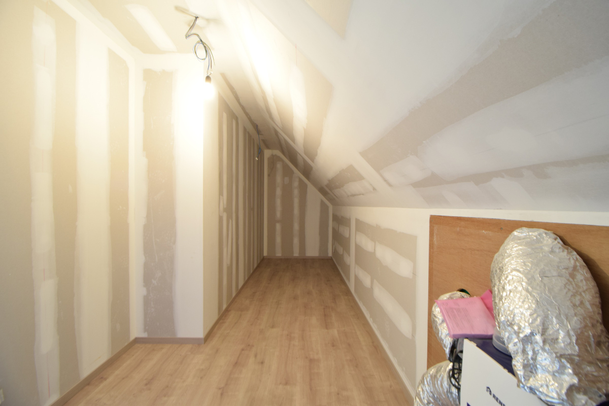 Onder dak is er een grote slaapkamer en een bergruimte.