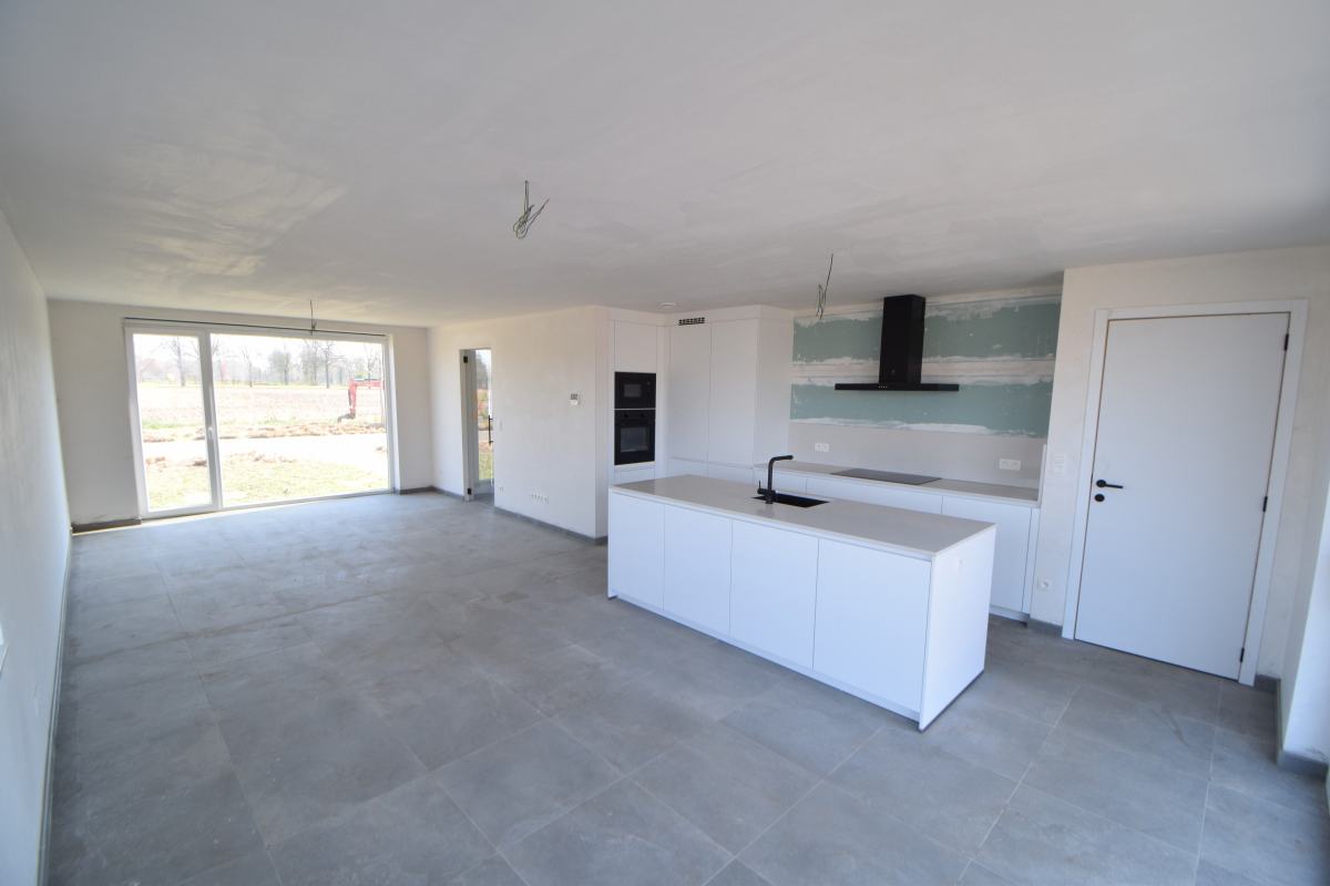 Rustig gelegen moderne en ruime nieuwbouwwoning met 3 slaapkamers nabij het centrum van Vorst-Laakdal.Je komt binnen via een mooie inkomhal met apart gastentoilet en zwevende houten trap naar de bovenverdieping. De inkomhal geeft uit op een grote leefruimte met veel lichtinval die bestaat uit een open keuken, eethoek en zithoek met zicht op het terras en de tuin achteraan.