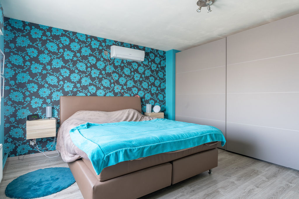 | Slaapkamer 4 | 23,65 mē | Grote slaapkamer achteraan, in de slaapkamer is een airco voorzien, laminaat vloerbedekking. |