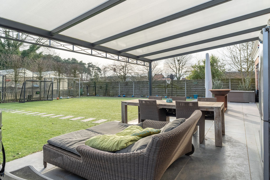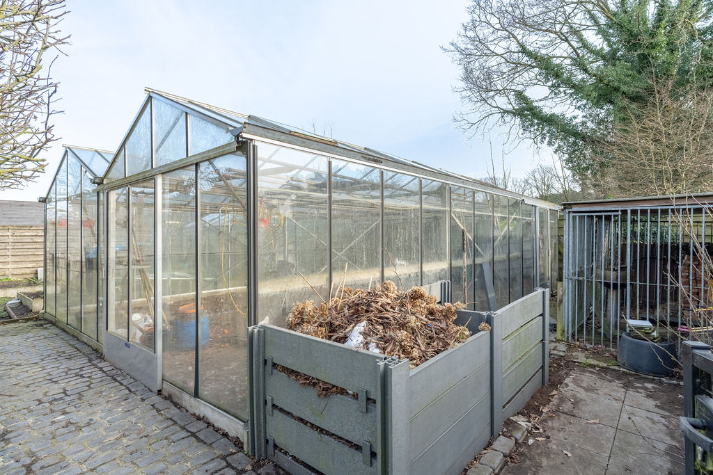 Buiten is het minstens even aangenaam vertoeven. De grote, volledig afgesloten zuidgeoriënteerd tuin vormt een echte troef. Hier geniet u de hele dag van de zon in alle privacy. In het achterste deel van de tuin is een moestuin voorzien, de serres kunnen mits compensatie blijven staan.