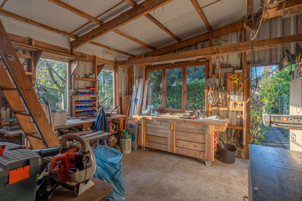 | Tuin | Achteraan is de tuin aangelegd met een terras ter hoogte van de woning, in de tuin achteraan staat een carport en tuinhuis, alsook een klein werkhuis. De woning kan naar rechts uitgebreid worden op de tuin rechts, wat potentieel interessant is om extra woonruimte, kantoor of praktijkruimte te creëren, de ideale mix van wonen en werken. |