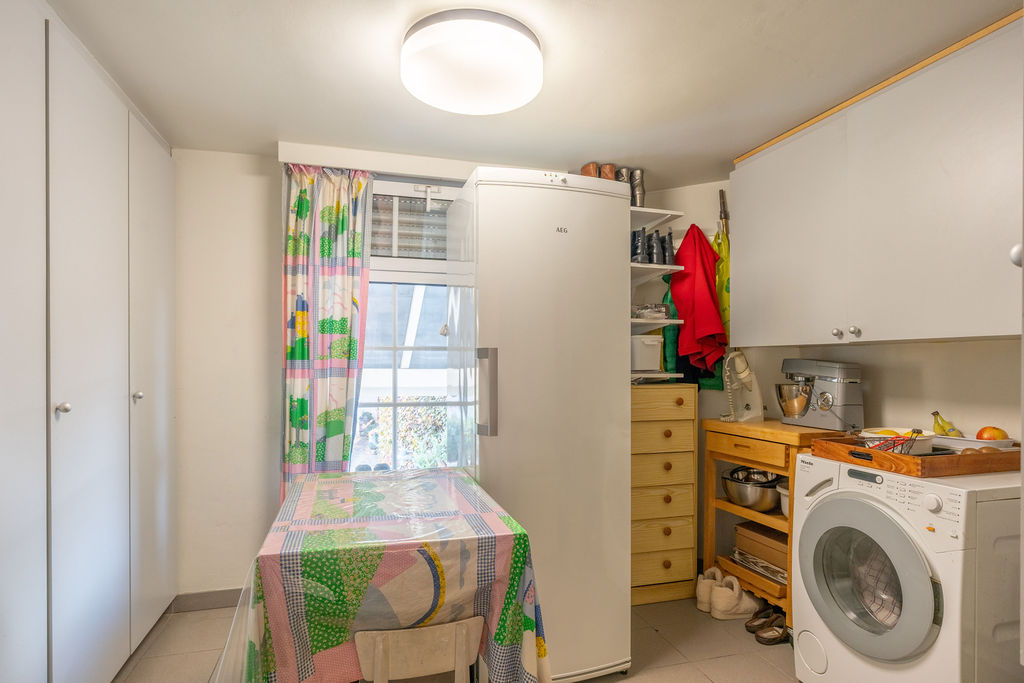 | Wasruimte | 9,00 m² | Wasruimte achteraan ter hoogte van de keuken, hier is aansluiting voorzien voor wasmachine en droogkast. |
