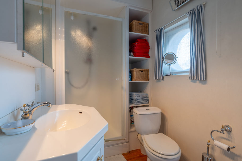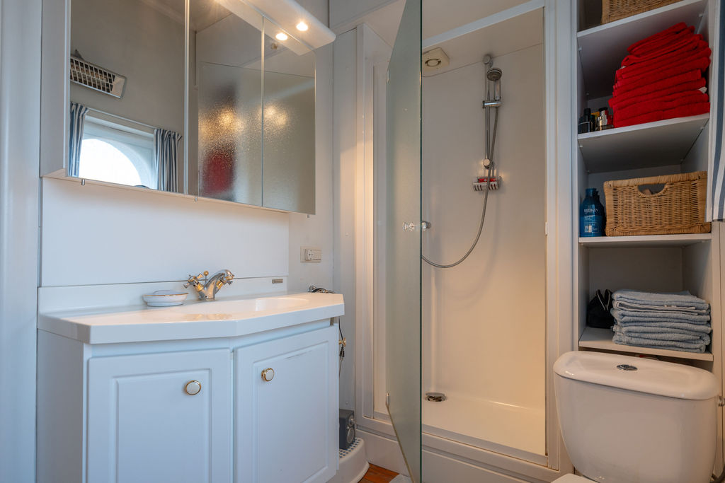 | Badkamer 1 | 6,00 m² | Knusse badkamer met lavabomeubel, douche, toilet en kastruimte. Houten planchet vloerbekleding. |