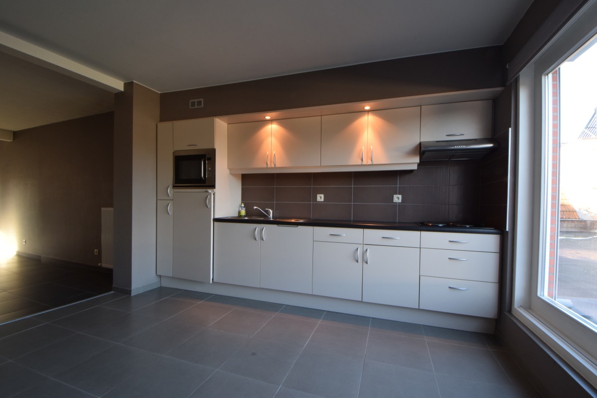 Ruim duplex appartement met twee slaapkamers, groot dakterras en garage in het centrum van Gierle.