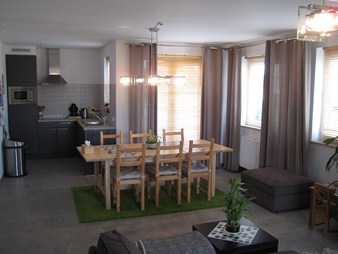| Living | 28 mē | Woonkamer met aanpalende open keuken en terras. |