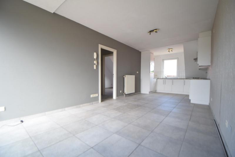 De leefruimte bestaat uit een zit- en eethoek en een open, ingerichte keuken. De woonkamer geeft via een schuifraam uit op een groot dakterras achteraan met een mooi uitzicht. De keuken is voorzien van een elektrisch fornuis, dampkap, oven, inbouwijskast en voldoende kastruimte.