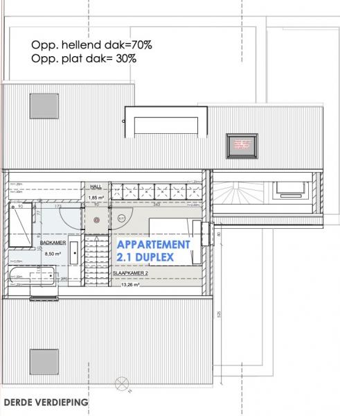 | Slaapkamer 2 | 13,62 m˛ | Grote slaapkamer in de dakverdieping, koper heeft inspraak in de vloerbekleding. |