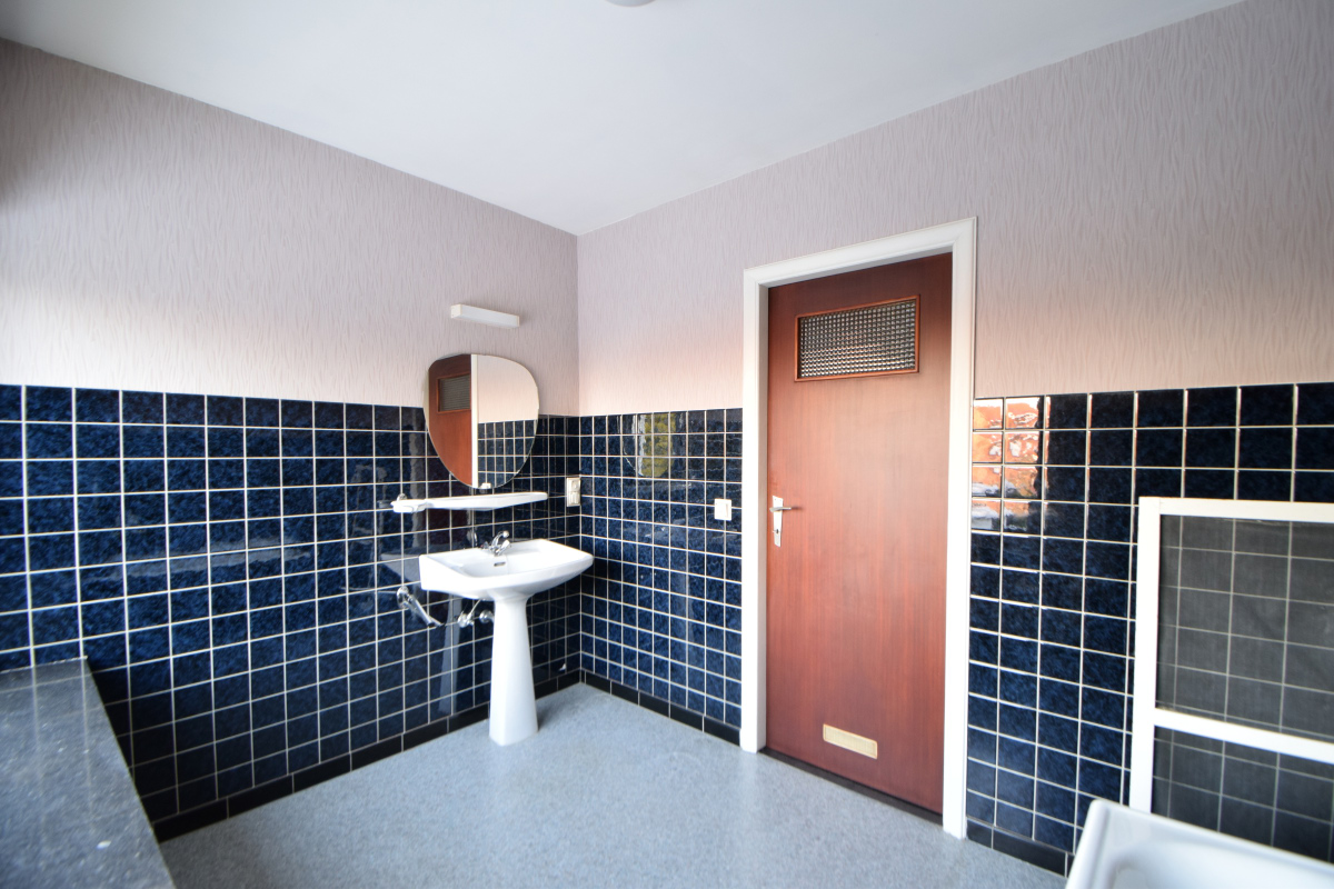 De keuken geeft uit op de inkomhal, de kelder en de achterinkom met lavabo en apart toilet.