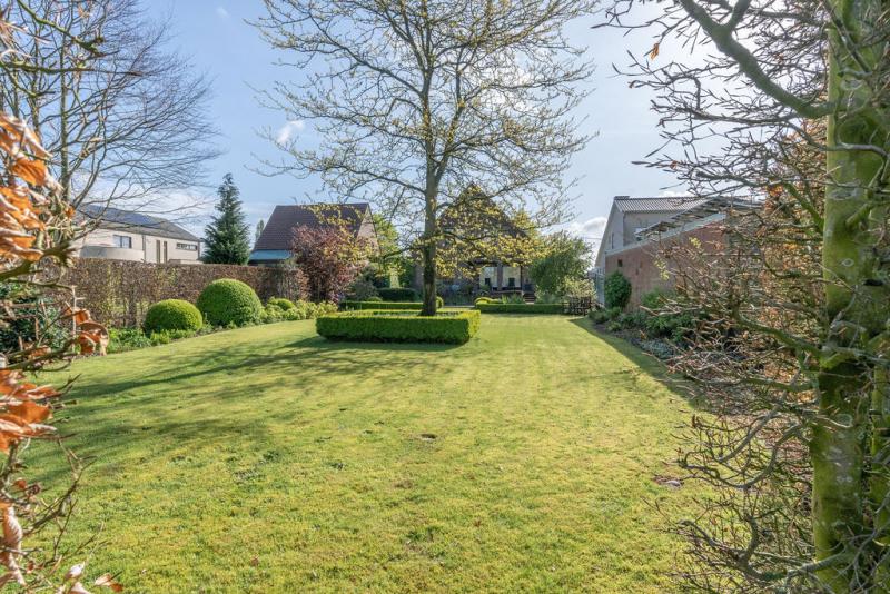 | Tuin | Prachtige tuin met volledig aangelegd met vijverpartij en terras, prachtige bloemperken, hagen en centraal een karaktervolle boom, achteraan is er een tuinhuis geplaatst |